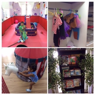 We headed into the house to cool off since it was almost noontime. The kids loved the change of environment and with that came a renewed level of energy and need for new discoveries. There were book shelves, ball pits, a castle, a cooking section, a dress up section and a table with blocks and a train set. Oh what fun!