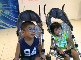 Double stroller is definitely good for parents with 2 kids on long journeys. No tantrums, just put them into the stroller when they are tired!