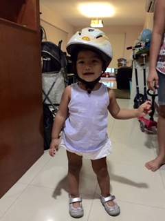 Bella in her brother’s old Yepp helmet