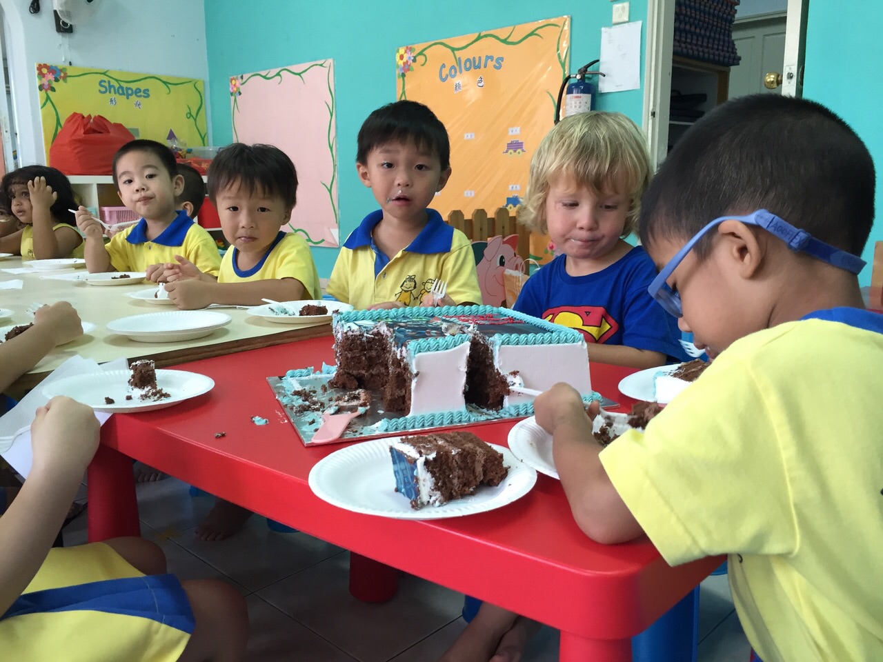 To kick things off, we celebrated Jah’s birthday (2 days early) in school. With his ‘carefully selected’, ‘mind changed many times over’ – Marvel Avengers cake. See my earlier post on this to understand what I mean. Getting 20 kids to sit patiently around a table for cake was quite a feat so I’m sorry that I don’t have a close up of the cake. It was a 2kg Marvel Avengers cake from Bengawan Solo and it was pretty yummy. I’m guessing we managed to feed the rest of his school for tea-break that day. 🙂 The kids were also really excited about their goodie bags, especially the boys who were declaring to me who their favourite Cars character are.