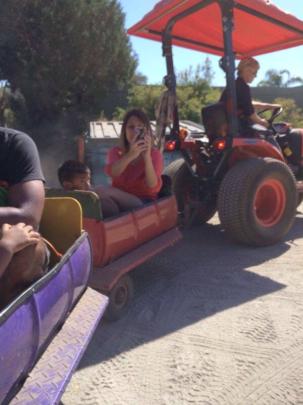 We were fortunate that the tractor ride was just about to start when we got there and so we all hoped on for a jolly good dusty ride. Yes it will get a little dusty since you are seated pretty low and especially if you choose a spot closer to the driver. But Jah and Bella really didn’t seem to mind! In fact I have a video of Jah repeatedly calling out for me and pointing out this and that along the way. And yes we did have to go a few times until I convinced him that we should go feed the animals.