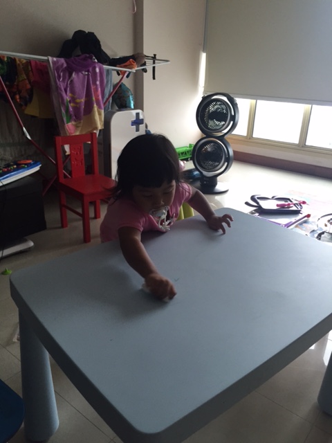 4.30pm – Kids are up! Activity and snack time!! Yes, Bella has been tasked to clean the table because she was naughty and drew on the table and floor instead of in the book. Tsktsk!