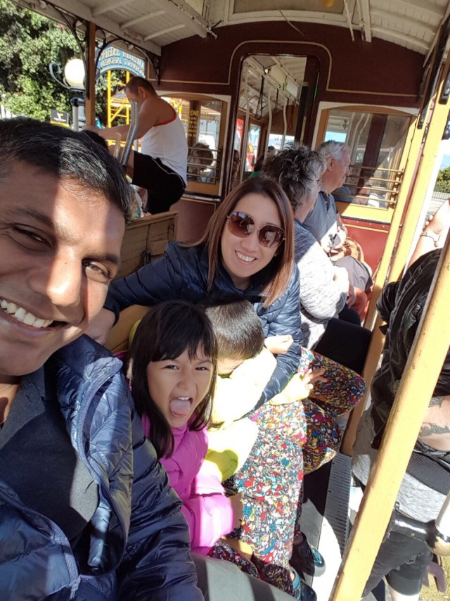 After breakfast, we walked across the street to the start of one of the cable car tram lines to begin our journey. There were of course other cheaper public transport options to take us to The Golden Gate Park where the Koret Children’s Quarters are but we figured that the kids would love the experience on the cable car tram. They were both scared and excited to be sitting on the exposed side of the cable car tram and were thoroughly thrilled by the view that they got of the streets.