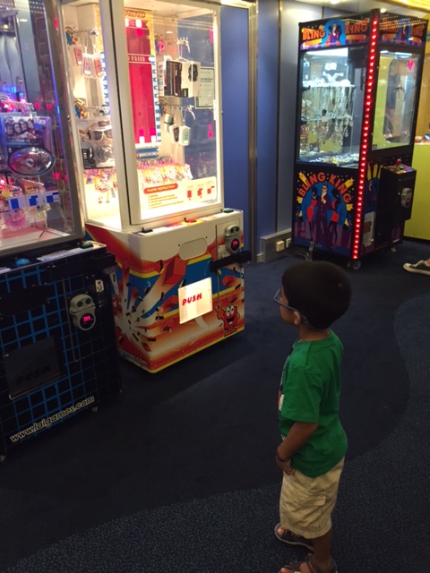 Just around the corner from Johnny Rockets, you would also find the Babies Club for little ones from 6 months to 36 months. Babysitting services are offered there and we saw that some parents had avail themselves to this paid service. We, on the other hand visited the Club for an entirely different reason. The Club also offered a toy rental service for kids below 3 years of age. You are allowed to take ‘home’ to your cabin, 1 set of Fisher Price toys which you can either choose to keep for the entire length of your stay or return the next day and exchange for another set of toys. As these toys are available on a first come first serve basis, we would recommend you hop over early to select your toys. When we got there at 8pm on the first night, most toys were already taken up and we were very fortunate to have found something that Jah liked. We almost had a meltdown when he realized there were no more cars or train related sets. The Fisher Price toys were pretty fun and came in very handy in keeping the kids occupied in the room. Now if only our kids could be occupied with just one toy at home. Apparently kids understand the concept of making do and making the best of it. :p